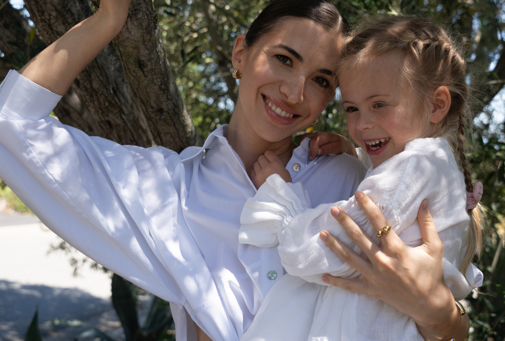 That's a great question. If you asked me three years ago, when I became a mom for the second time, I wouldn't have cared what I was wearing. I thought, "Whatever, kids don't care, and it's going to get dirty anyway." But then, after I had my second baby, when she was six months old, I started getting back into shape. I had my babies back-to-back: my first in 2019 and my second in 2021. They're about a year and six months apart. During that time, the last thing I cared about was my style. I realized that in my 20s, I hadn't really cared about style because I was focused on my business: working, building teams, and making videos. Then I thought, "I am aging." My mom actually called me and said, "If you care now, dress up." That conversation made me realize I do care about style. I wanted timeless pieces that reflect me as a person. With my Russian background, living in the US, being an entrepreneur and a mom, and caring about aesthetics, I sought a style that embodied all that.