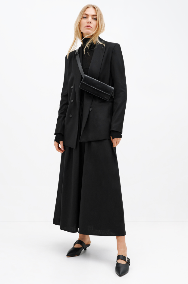 When the sun goes down, take Clara up to the rooftop for drinks above the city. Add the Norah Blazer for a little extra structure, accentuate your waist with the Kala Belt or the Irving Clutch cross-body for a look that reads sophistication.