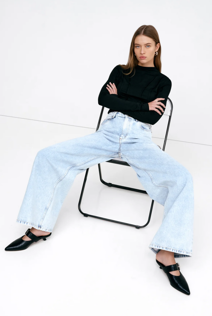 As Eva puts it: “It's important to identify the look and fit you want. Be experimental and try different styles to find your choice. I love loose, wide-leg jeans in a light wash for a full-on relaxed feel (sizing up our Linda can achieve this) or a cropped straight- or barrel-leg for a refined look (like Stevie or Monique with booties!). ”