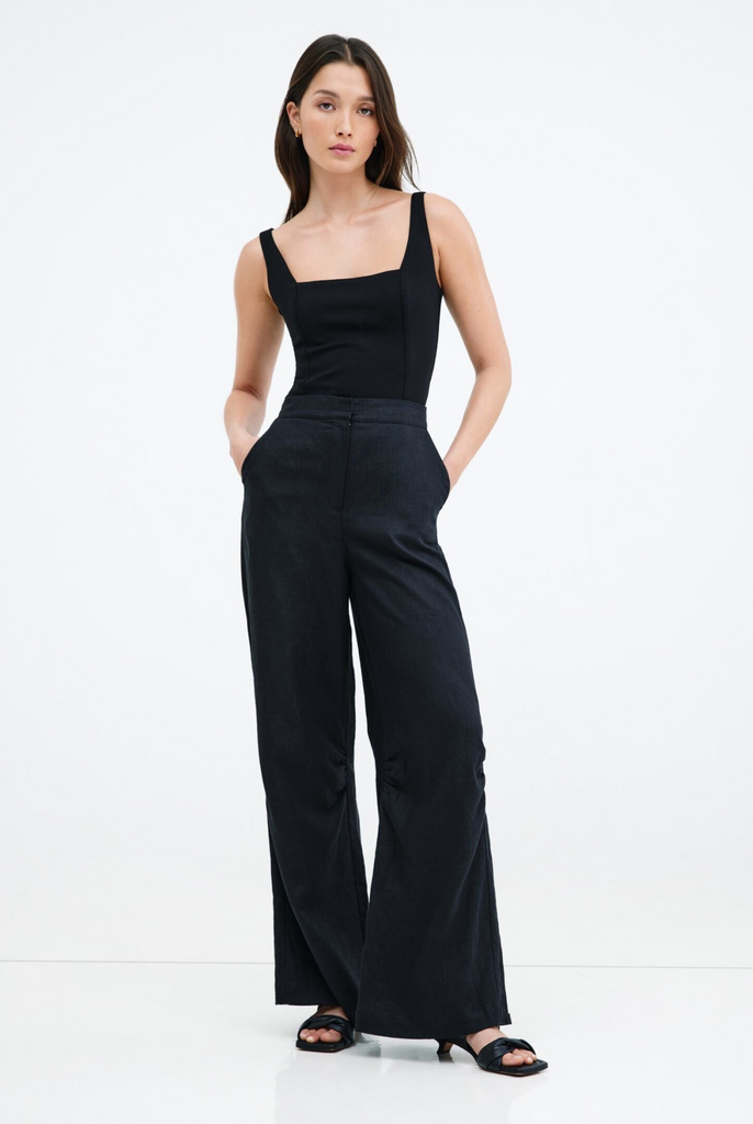 A good pair of linen slacks can really change the mood in a woman's closet. Take our Runa Pants, a sophisticated, high-waist cut with textured edge that feels like a breath of fresh air on your skin. Style Runa with a fitted top to balance her wide-leg volume for casual and cocktail looks alike.