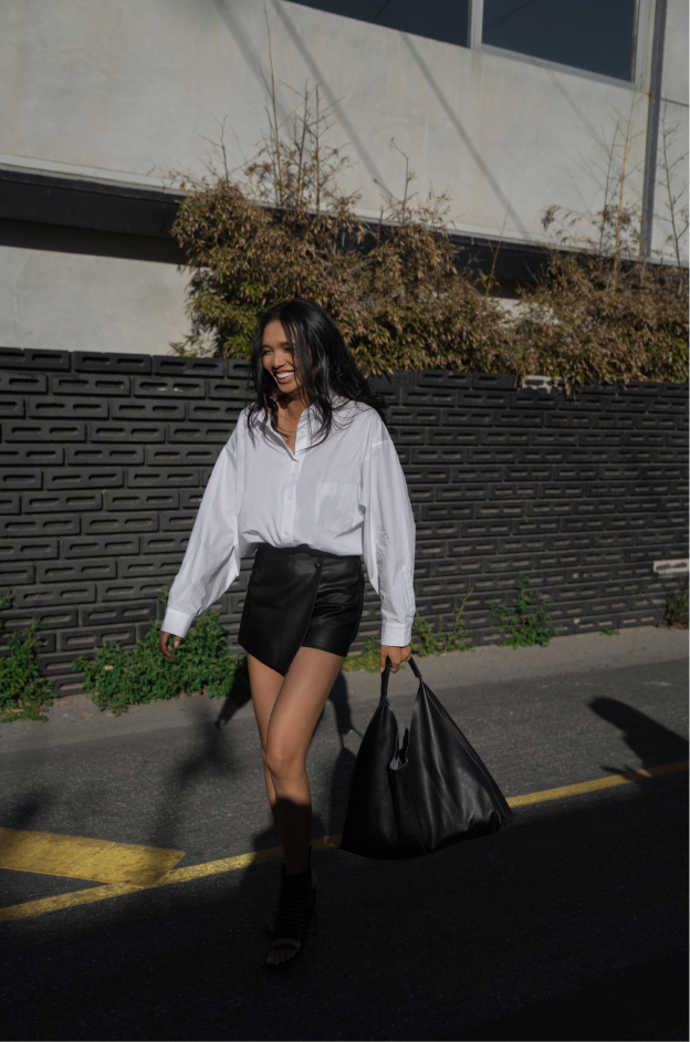 It's so hard to choose just one favorite. Every single piece has something for me. Before the shoot, my favorite was the Raphaela Shirt because you can dress it up or down. During the shoot, I realized how much I love my Kelly Tote and now I just don’t stop wearing it. As for my Lindy Skort, I notice that every time I wear it, everyone compliments me and I feel like this summer you’ll see me wearing it a lot.