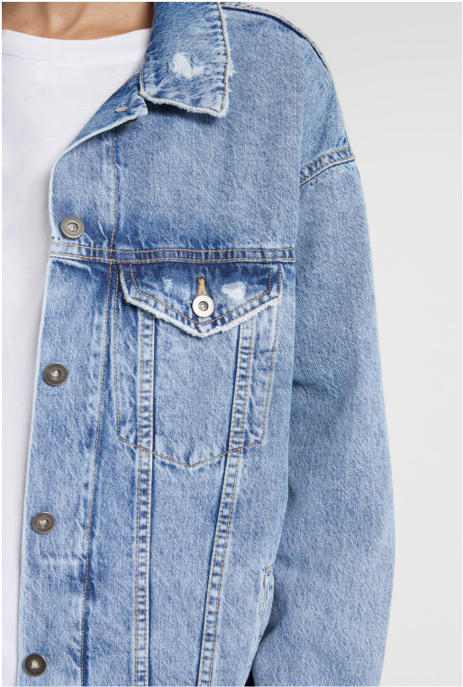 "The one denim jacket I could never live without! The wash is perfectly lived-in, the oversized cut is just right, and the geometric stitching on the back is so cool. Also, the length is unique and flattering—just as cute with loungewear as it is layered over dresses. People are always asking me where I found it!"