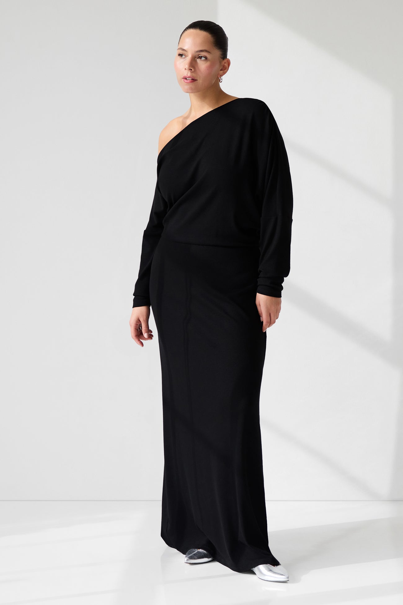 Our Amia Maxi Dress is a floor-sweeping maxi from ribbed European jersey that masterfully balances comfort and sophistication. Her relaxed, one-shoulder cut extends into long sleeves with a gathered waist for structure, making her a chic choice for either daytime moments or dinner parties, and everything in between.