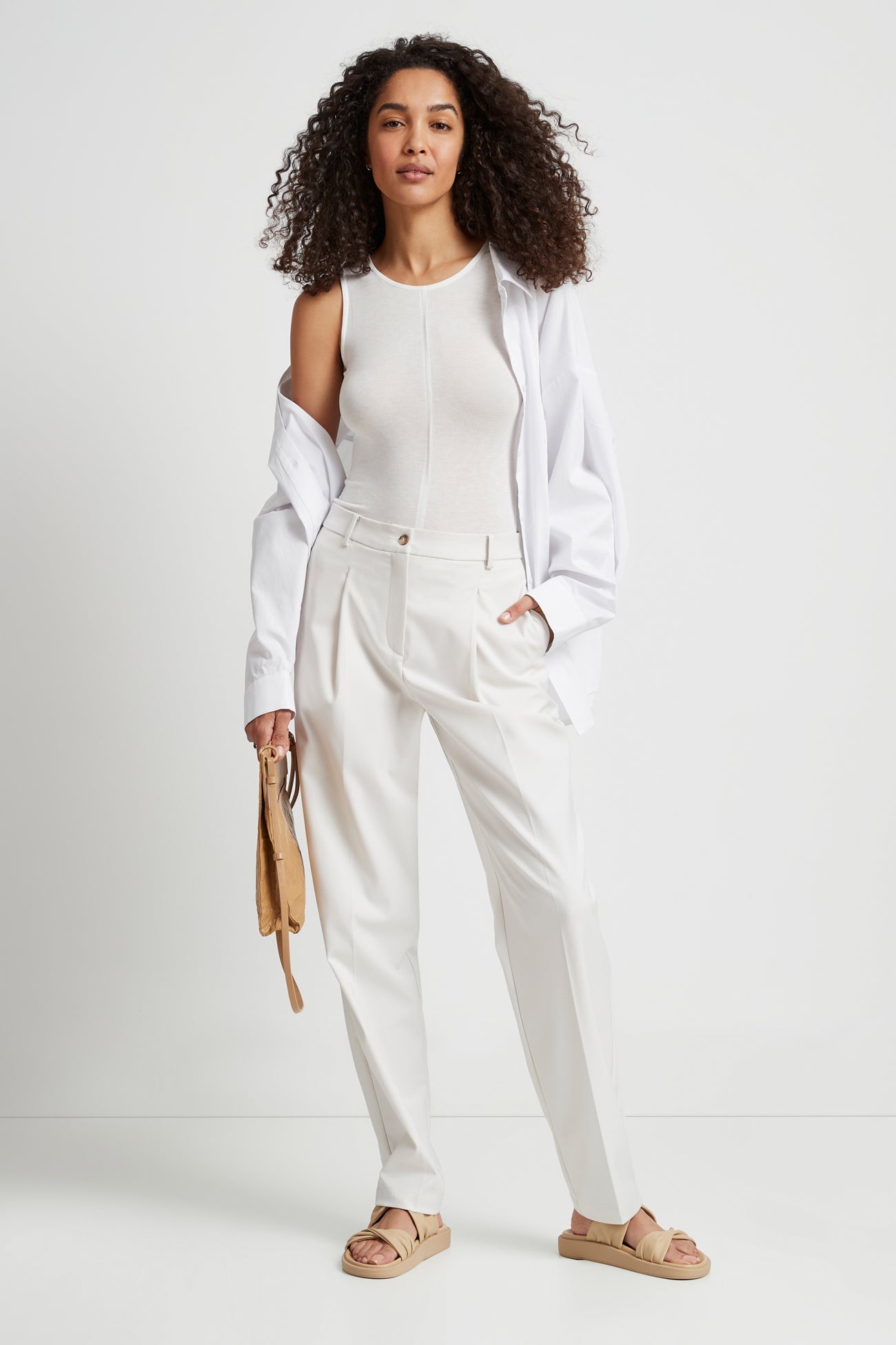 Introducing our Archie Pants, designed to make you feel oh-so-put together while oh-so-comfortable. They feature a vertical pleat detailing for a polished look and feel, with the crease adding movement to a relaxed, tapered leg fit. Crafted from soft, comfy polyviscose, they're mid-rise with roomy pockets for your essentials.