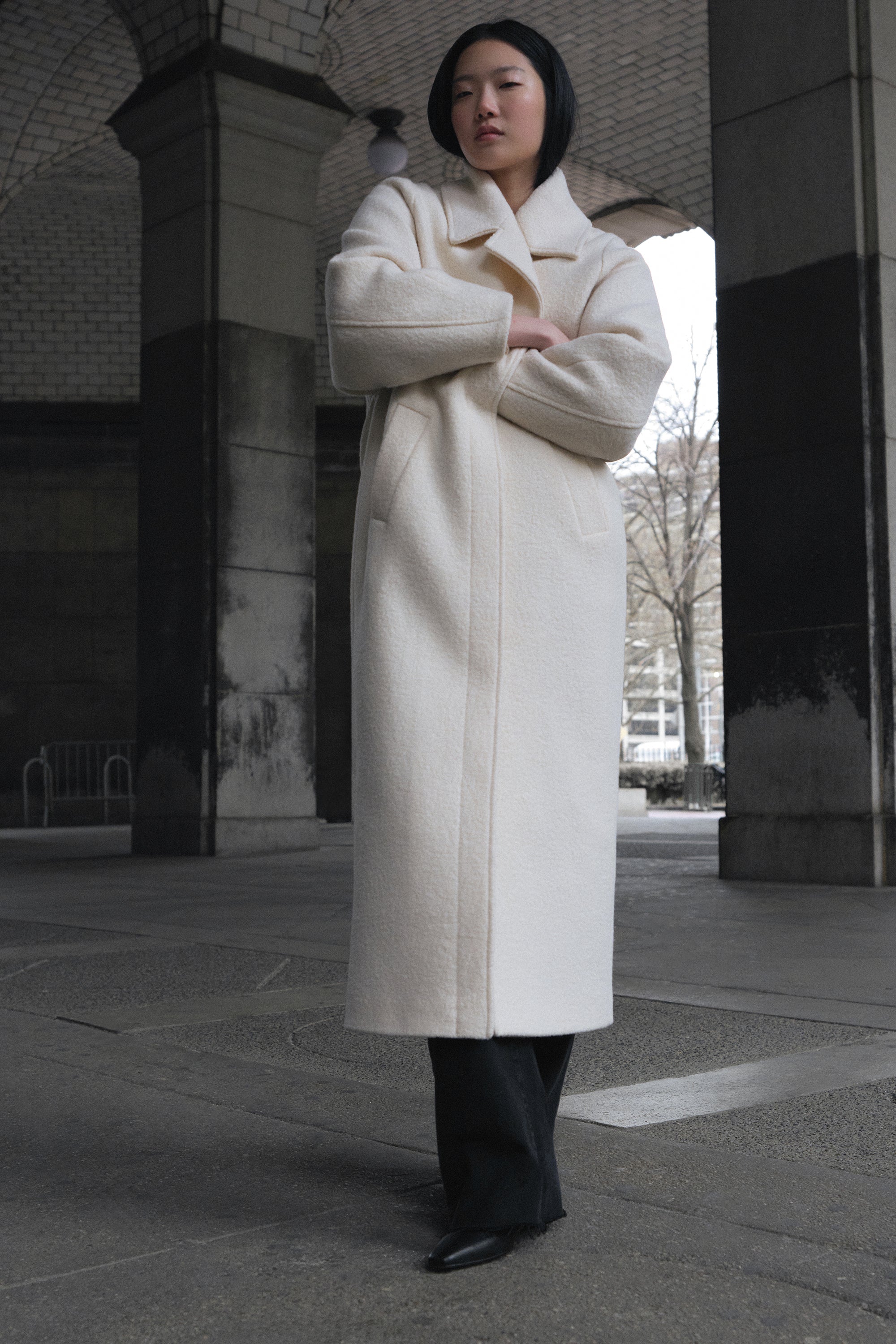 Your one-and-only outerwear essential, the Charlton Coat features dropped shoulders and a statement lapel in a long, oversized silhouette. Crafted from soft 100% virgin wool and fully lined, she's naturally insulating, breathable, and resilient. Magnetic snap closures, functional side pockets, and an overlapping back vent seal the deal for season-after-season style.