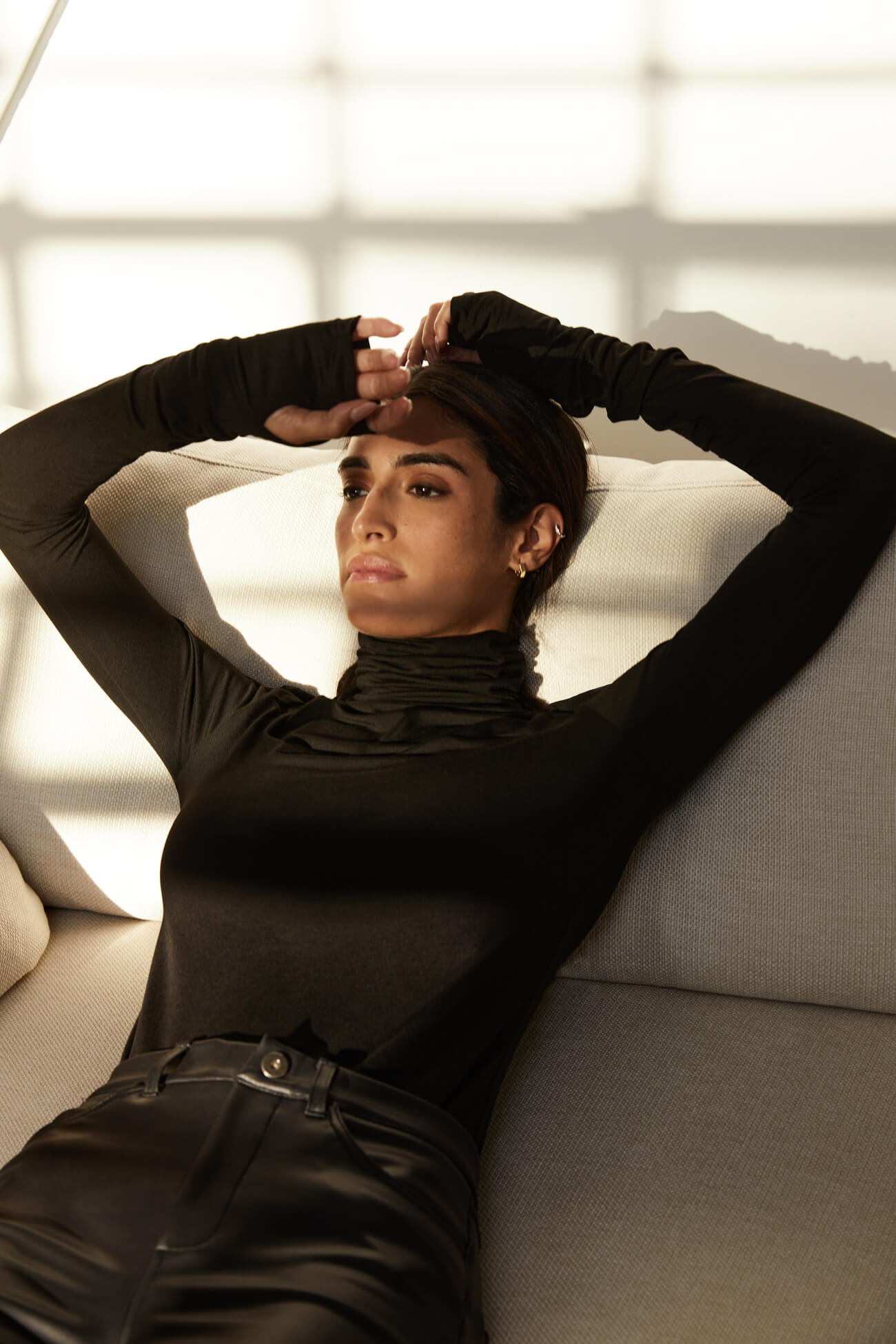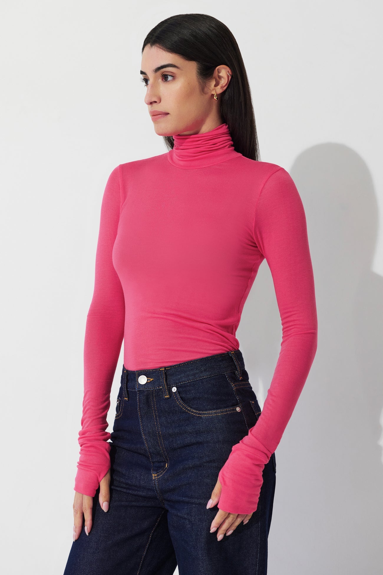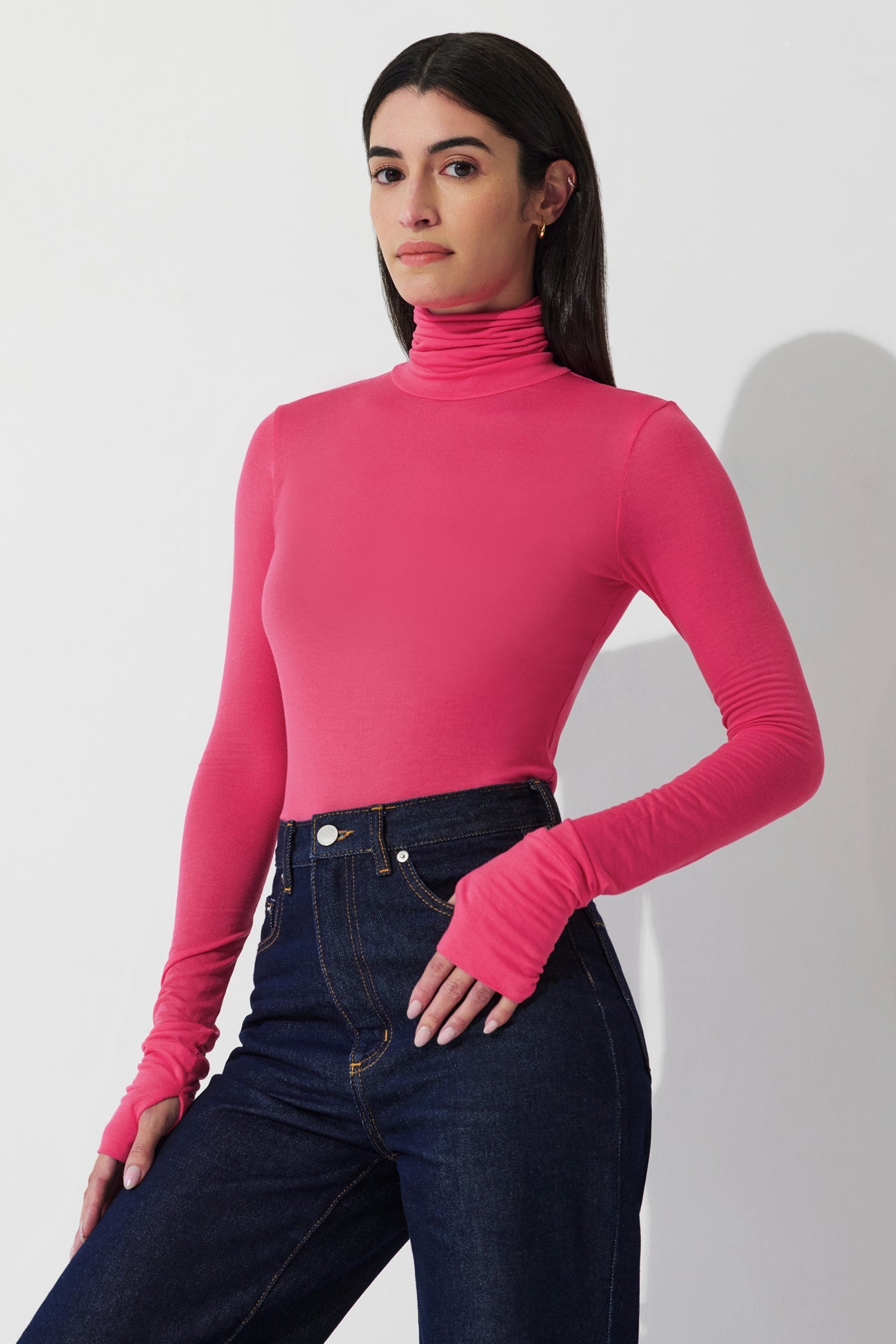 Meet Eloise, our turtleneck providing dream tailoring with lasting comfort. Casual yet effortless to dress up, she's a truly versatile staple for your closet. Handcrafted from our soft, high-stretch and sustainable European jersey, she features thumbhole sleeves and our standard extra length around the torso.