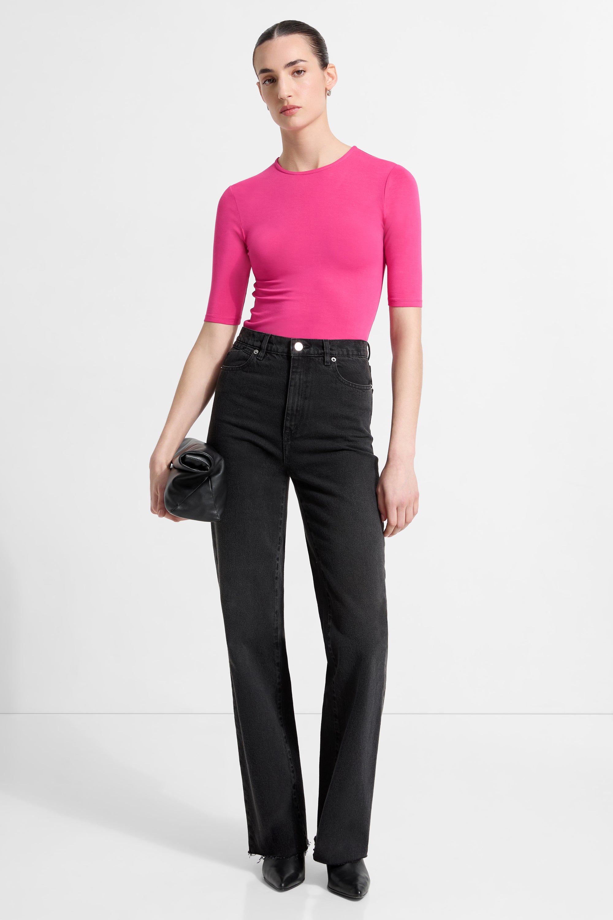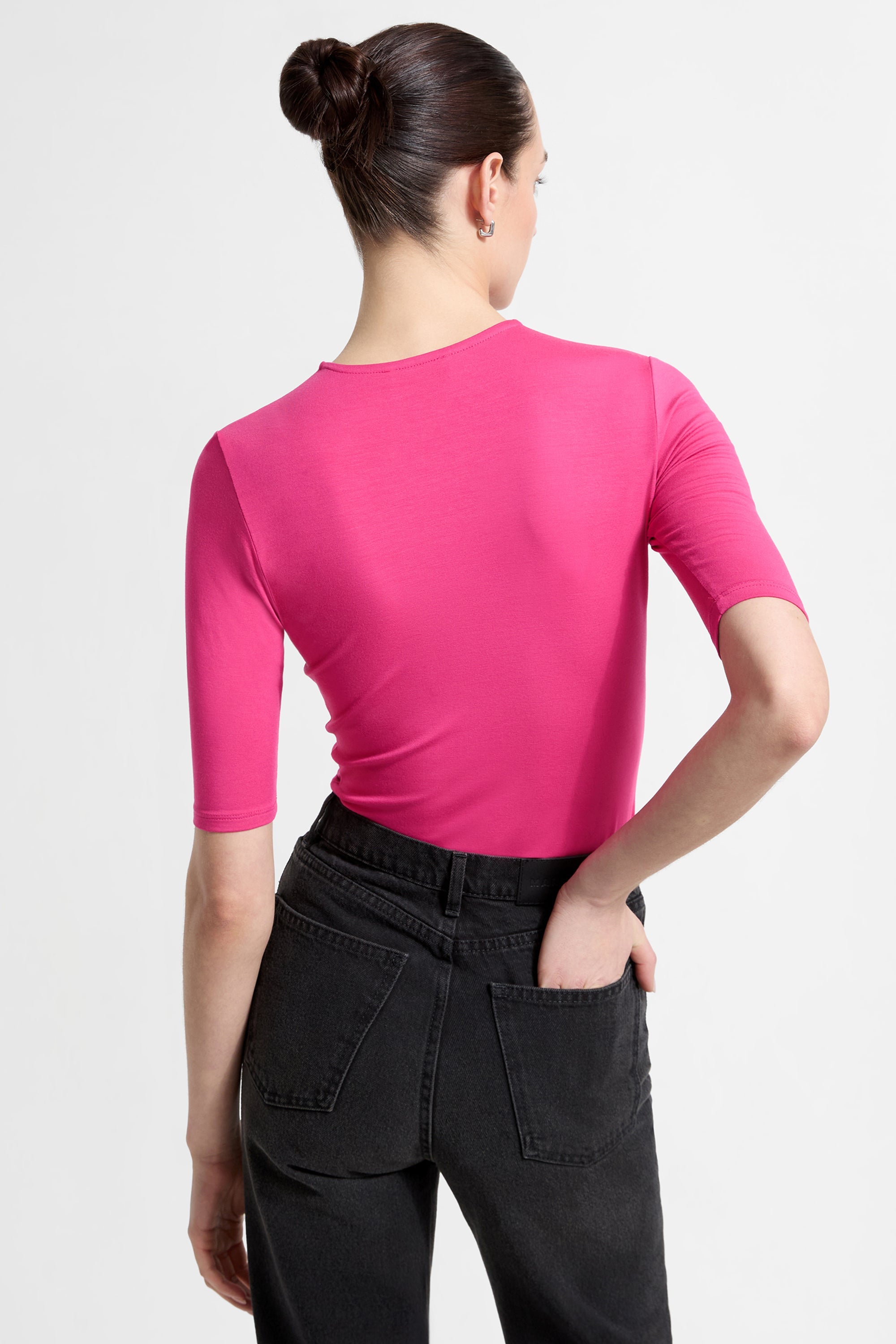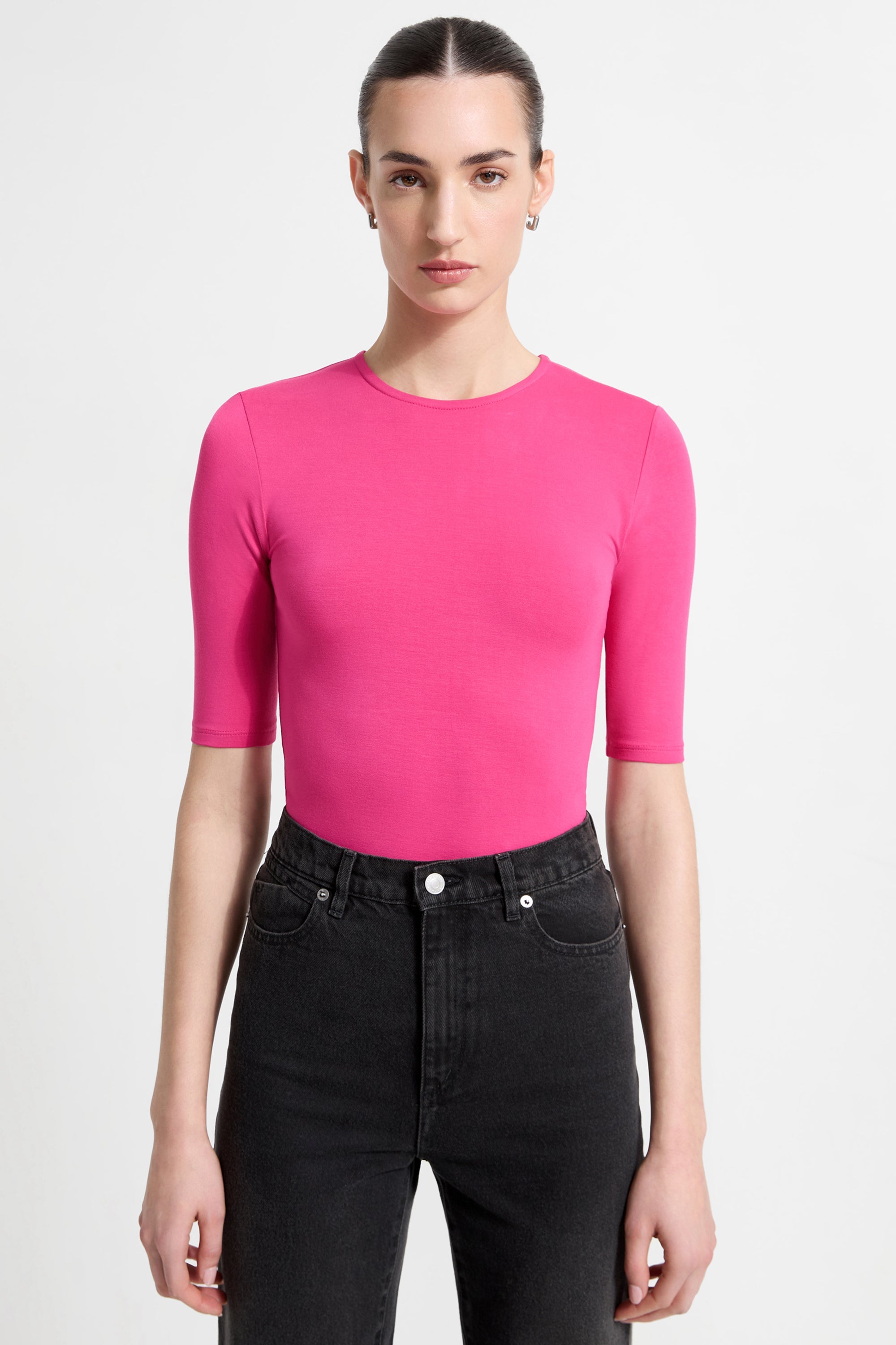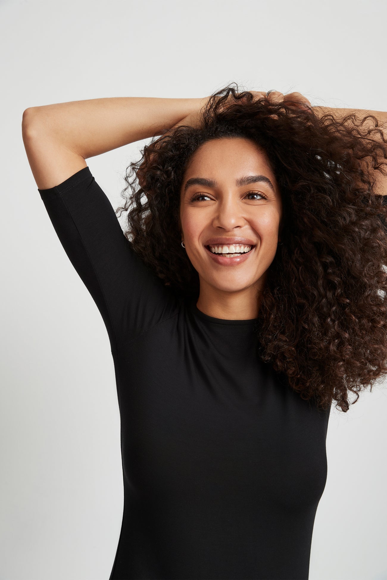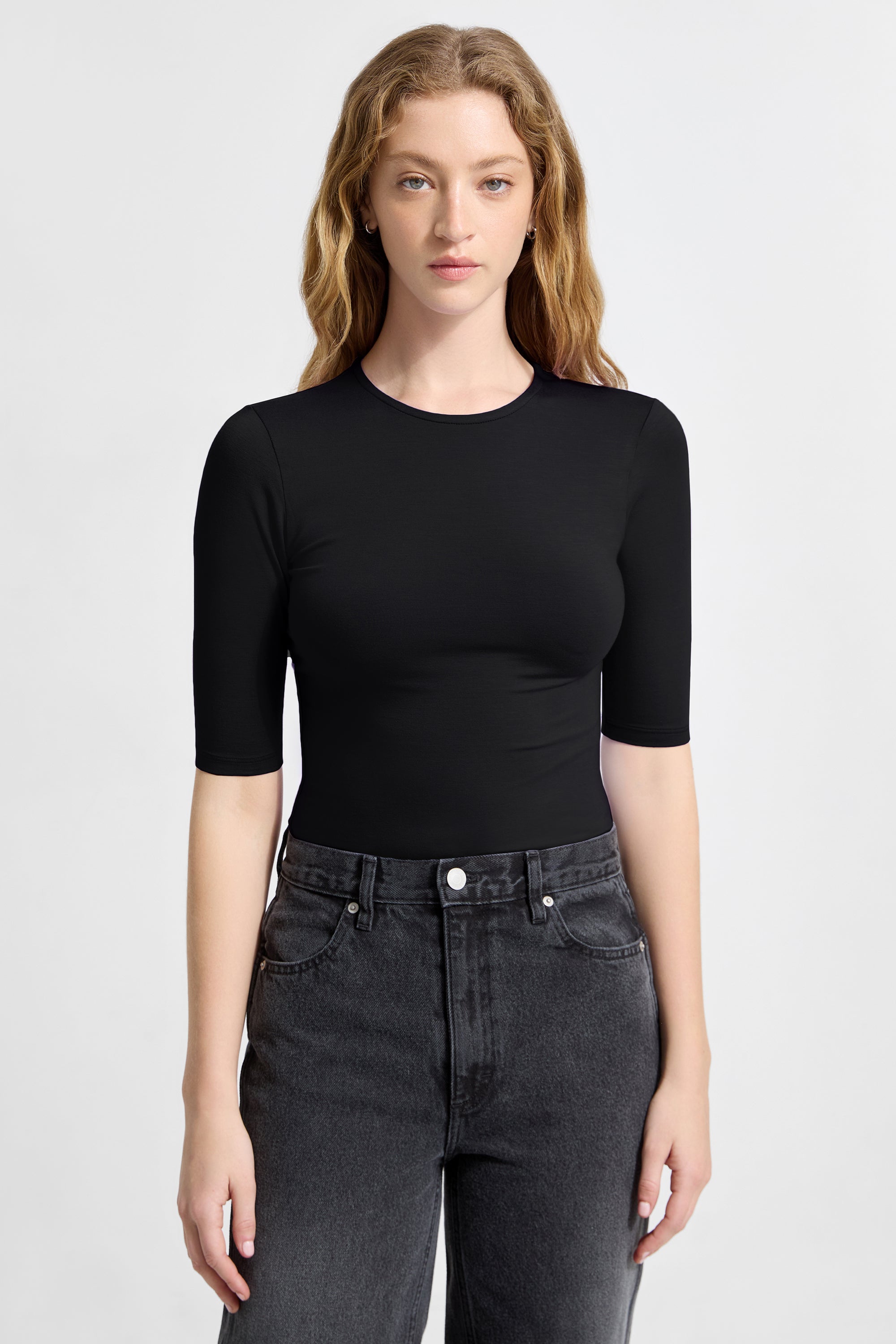 Meet this season's versatile staple: the Frankie Top. Perfect for all-day wear, she's the effortlessly sleek piece for your capsule wardrobe with a rounded neckline and mid-length sleeves. Crafted from our beloved high-stretch and sustainable European jersey, Frankie smoothly tucks into jeans and layers like a dream.