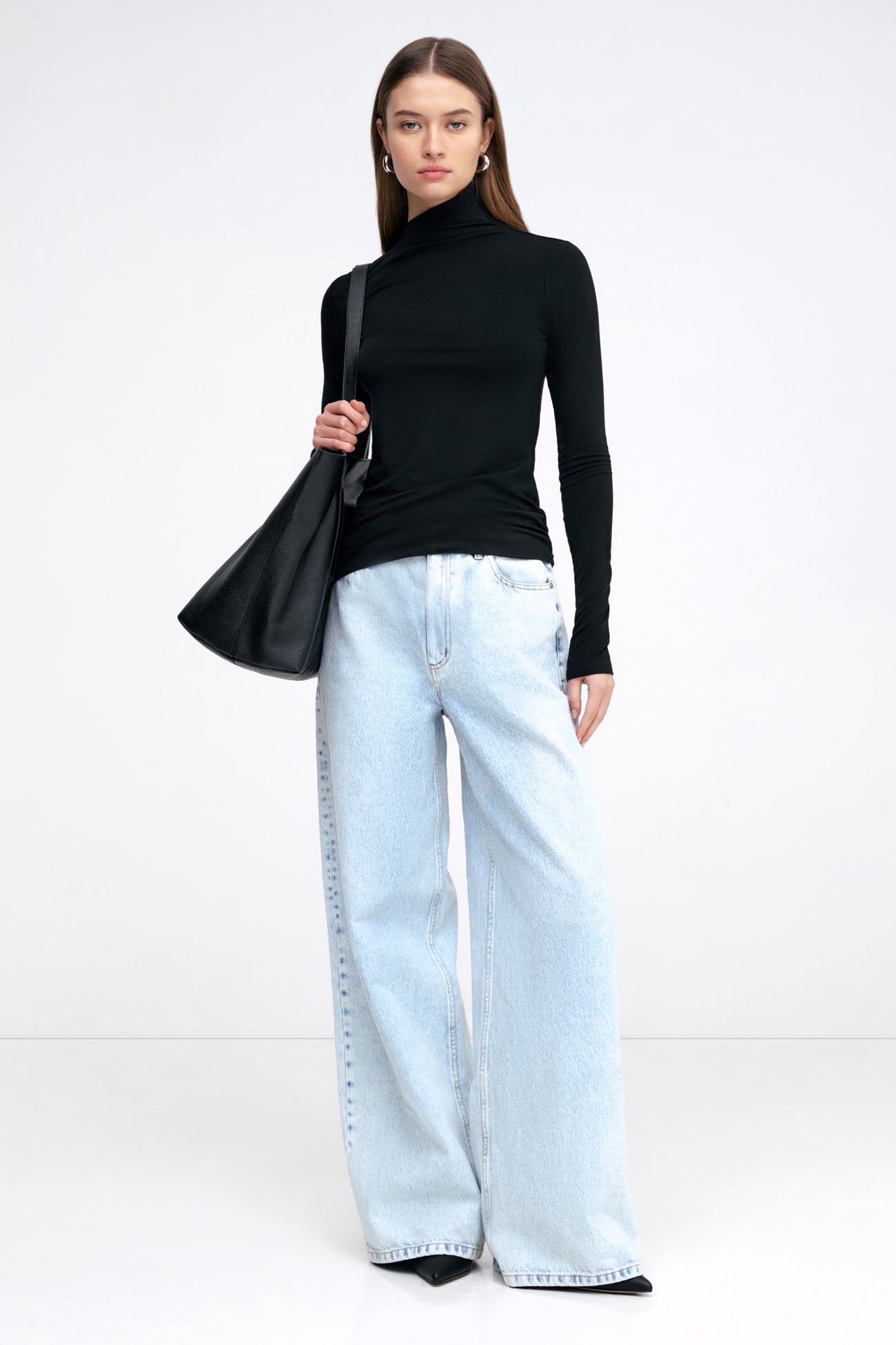 It’s our Ilana Top’s contemporary subtlety that makes her so outfit-changing. This long-sleeve top is crafted from soft, high-stretch and sustainable European jersey to mold perfectly and comfortably to your form. Her showpiece? The diagonal, raw-edged neckline, elevating a classic mock-neck design to a unique day-to-night essential.