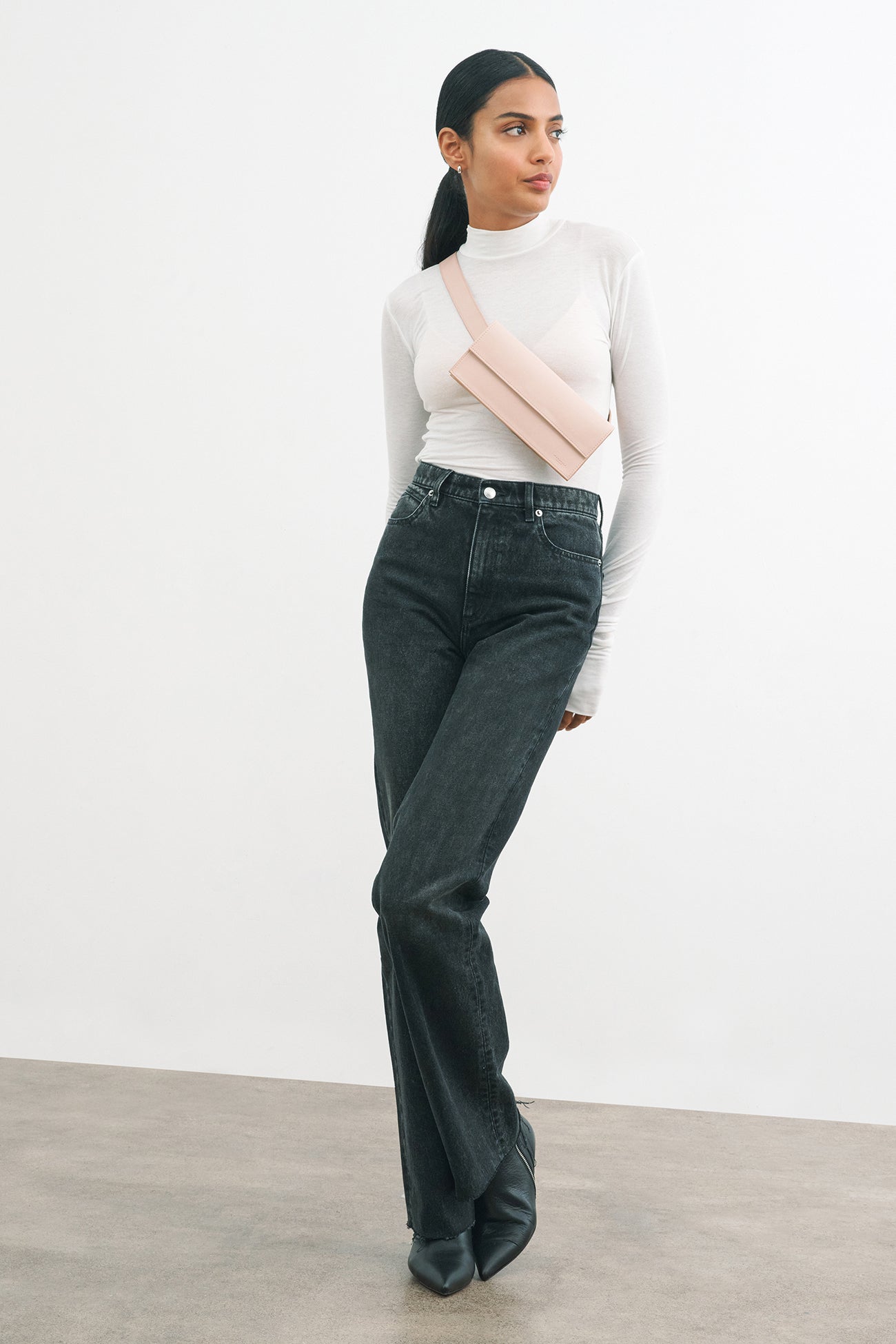 - Palak is shown with vegan blush pink. Maritza is shown modeling Irving in vegan black.
