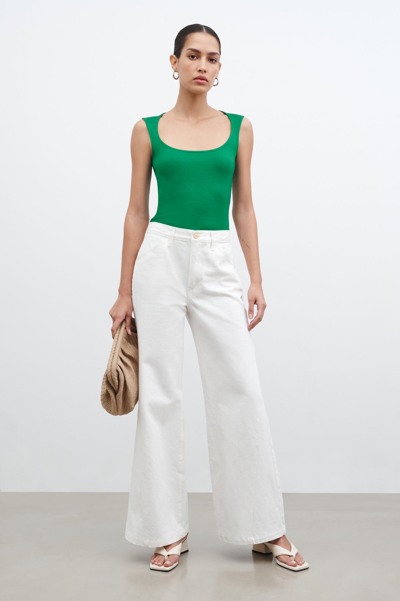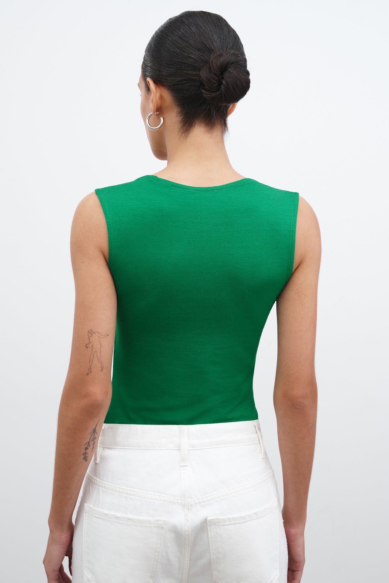 Flattering and feminine, our Jennie Top is a study in curves, featuring a delicate scoop neckline with elegant, rounded straps. Fashioned from soft, high-stretch and sustainable European jersey for a hugging fit, Jennie's as comfortable as she is versatile—wear her with jeans for a classic day look or with faux leather for elevated edge during the evening.