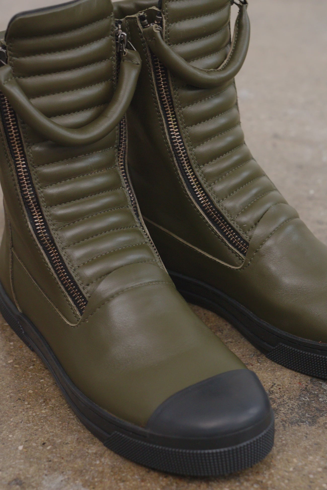 Sculpted from Italian leather, our Karma Boots are a minimalist masterpiece that transcends trends. Designed with a unique ribbed detail, an oversized double zip pull, and a sneaker-inspired cap toe, they're a fresh alternative to your usual sneakers or combat boots. You can adjust the zips for a comfortable fit and a customized look. Handmade by one of Europe's leading shoemakers. Now featuring a removable insole, designed for added comfort and support.