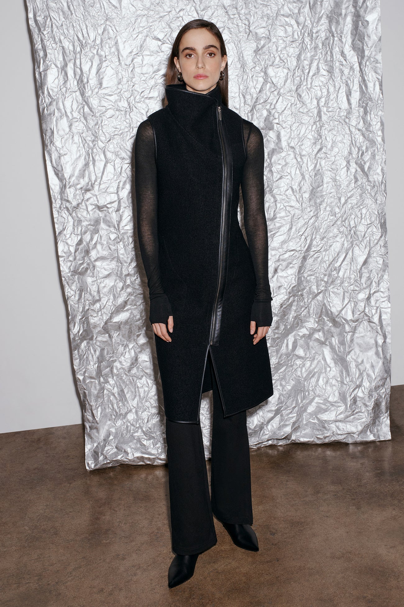 Wool meets effortless cool with our Kendra Vest. Crafted in 100% soft Italian virgin wool with vegan leather trims, this knee-length vest brings polished drama with its high collar and asymmetric zip. A sharp front slit and sleek welt pockets seal the deal. Wear her once, and you'll never want to go without.