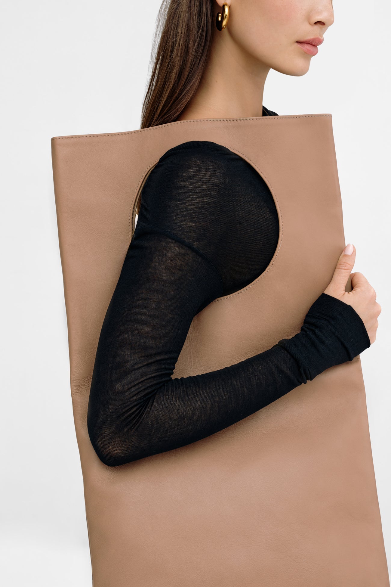 Our Maru Purse is the best of shape, substance, and style. Crafted from Italian leather, this day-to-night statement handbag contrasts a foldable rectangular silhouette with a circular arm opening that can be worn over the shoulder or carried as a clutch. Featuring a convenient side pocket and one large main compartment that fastens with a magnetic button to keep all your essentials safe.
