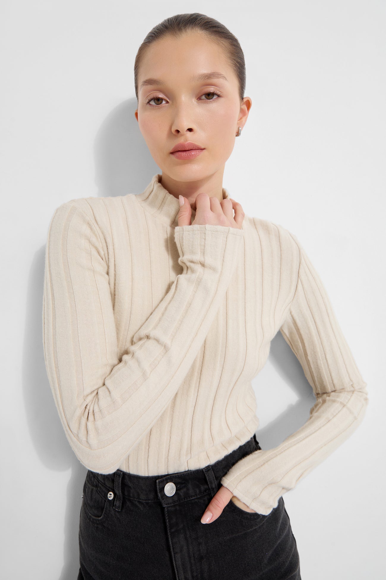 Keep your cold-weather looks classic with Samia. This mock-neck top is made from brushed rib jersey that’s pure softness, plus a little stretch. With long sleeves and sophisticated ease, she’s sure to be a staple in your collection for seasons to come.
